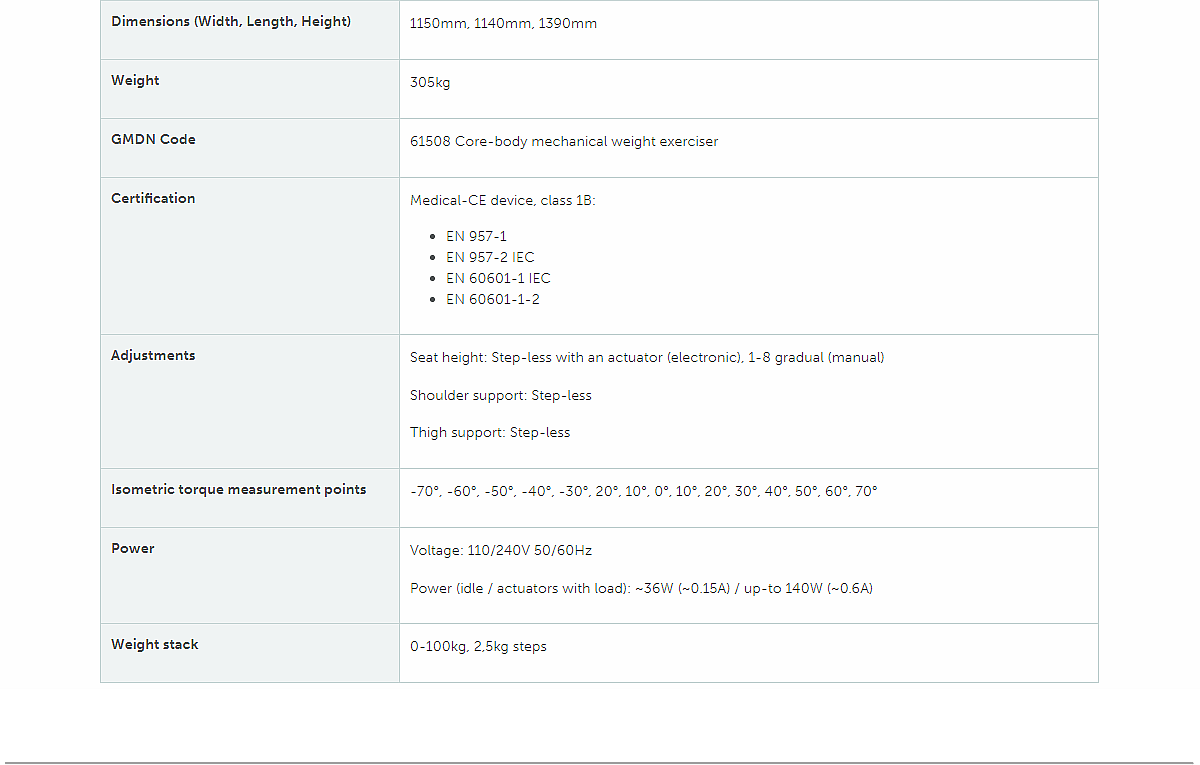 Automatic seat adjustment (electronic version), Ergonomically contoured seat for natural posture, Movement is carried out in two directions, Easy entry and simple positioning, Starting position can be at 10o intervals, EVE integration with strength and mobility tests, Weight stack: 1/25 kg