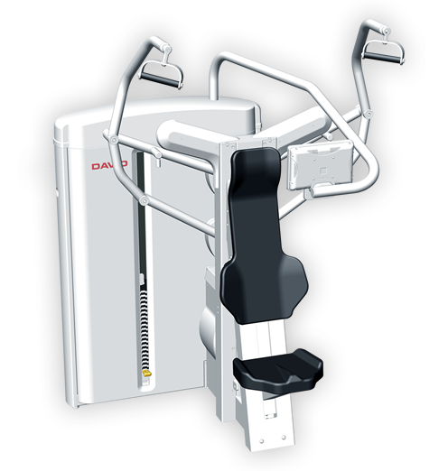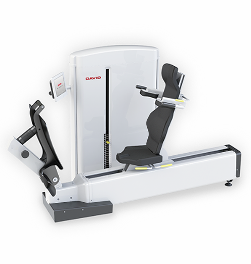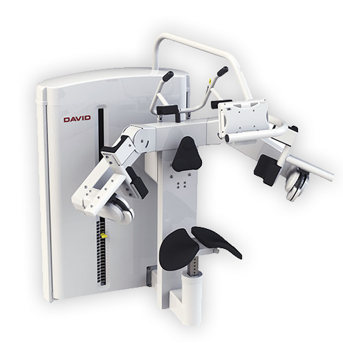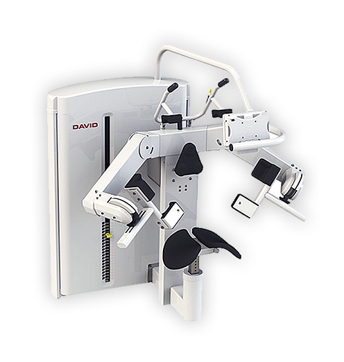 The DAVID Solution includes joint specific devices with optimized biomechanical properties for spine, hip & knee and shoulder joints. Using correct joint and axis alignment, scientifically proven loading curves and target area isolation enabled by effective fixations, these devices are remarkably gentle to the joints yet providing highest possible neuromuscular training effect.